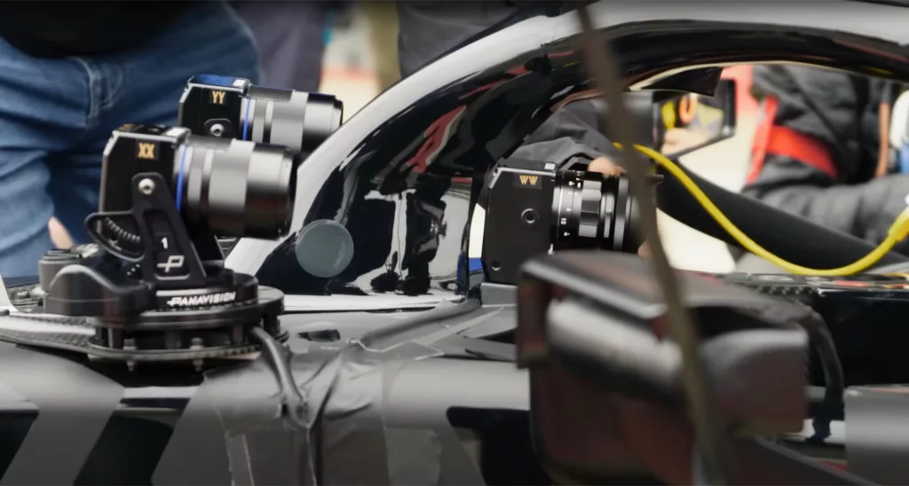 Компактные прототипы камер Sony были размещены по всему автомобилю. Это версия, которая может выполнять быстрое панорамирование дистанционно с помощью мотора Preston и пульта дистанционного управления. Источник изображения: Sony (скриншот из видео BTS)