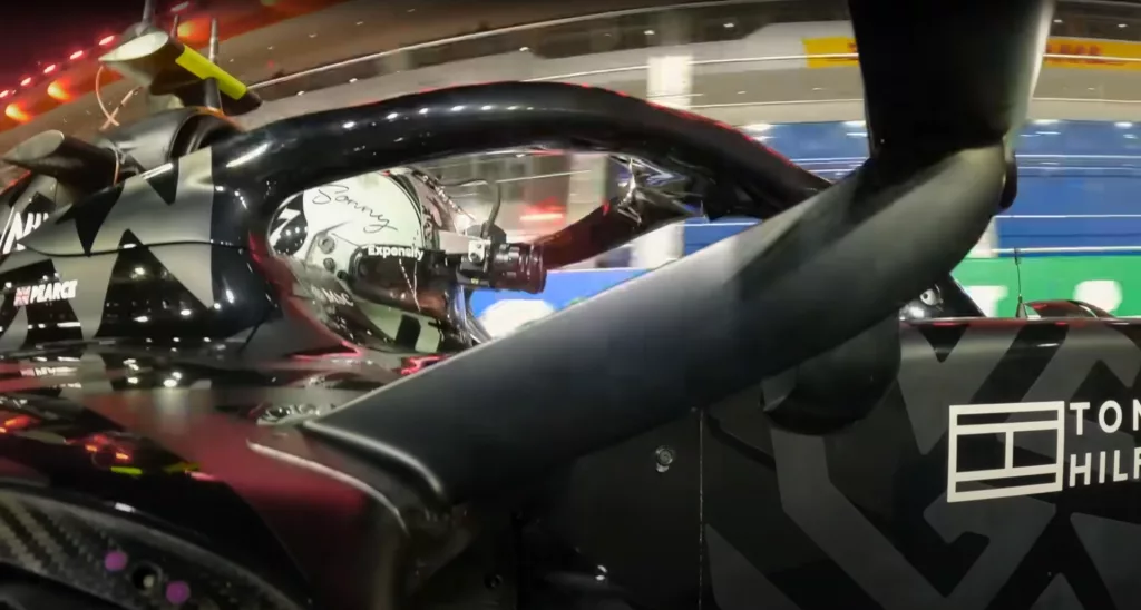 Чтобы запечатлеть культовые кадры с борта, на которых частично виден шлем гонщика — неотъемлемый элемент трансляций Формулы-1, но обычно с низким разрешением — Apple разработала специальный модуль камеры с использованием компонентов iPhone 15 Pro специально для фильма «F1: The Movie».