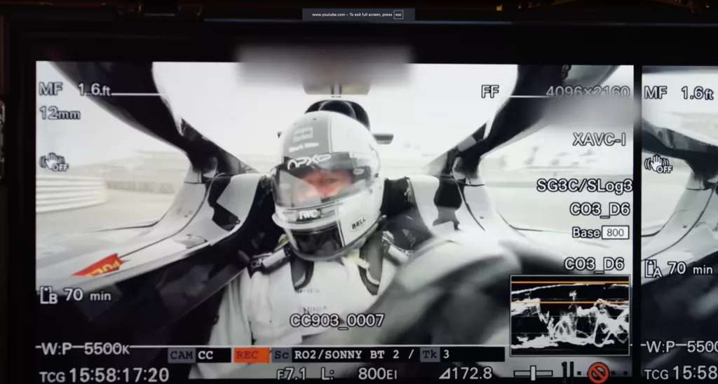 Они даже использовали эти камеры для съемки с точки зрения изнутри кабины, как видно на шлеме. Источник изображения: Sony (скриншот из видео BTS)