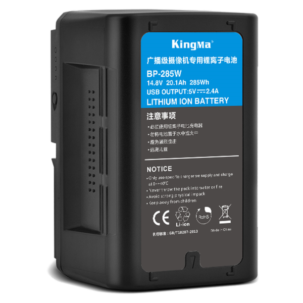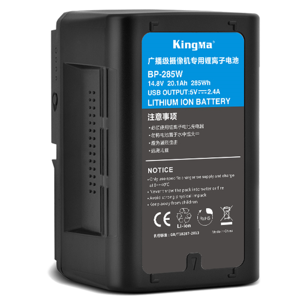 Аккумулятор V-Mount Kingma 285 Wh изготовлен на основе высококачественных элементов питания Samsung/LG. Литий-ионный аккумулятор оснащён креплением V-Mount для профессиональной техники. Батарея имеет контакты из чистой меди для более эффективной работы, и корпус из жаростойкого АБС пластика. На корпусе присутствует индикатор уровня заряда и кнопка включения.