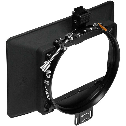 The Bright Tangerine Misfit Atom Pola+ Matte Box is a lightweight grab-and-go matte box. With its 143mm OD lens clamp, the Misfit Atom Pola+ can be adapted to fit on the front of most cinema lenses while keeping a thin profile due to the front-mounting filter trays. Up to two 4 x 4" or 4 x 5.65" filters can be used this way. Additionally, using the included 138mm Rota Ring, +1 and +2 diopters or round filters can be implemented in this lightweight setup. This matte box can be configured to fit on 15mm LWS or 19mm studio rods using separately available accessories.