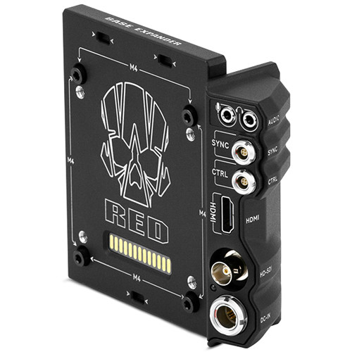The RED Digital Cinema DSMC2 Base Expander mounts to your camera/BRAIN module providing a host of interface connectors such as DC in, HDMI, 3G/HD-SDI, control and sync ports, and both a 3.5mm stereo mic input and a 3.5mm stereo headphone output.