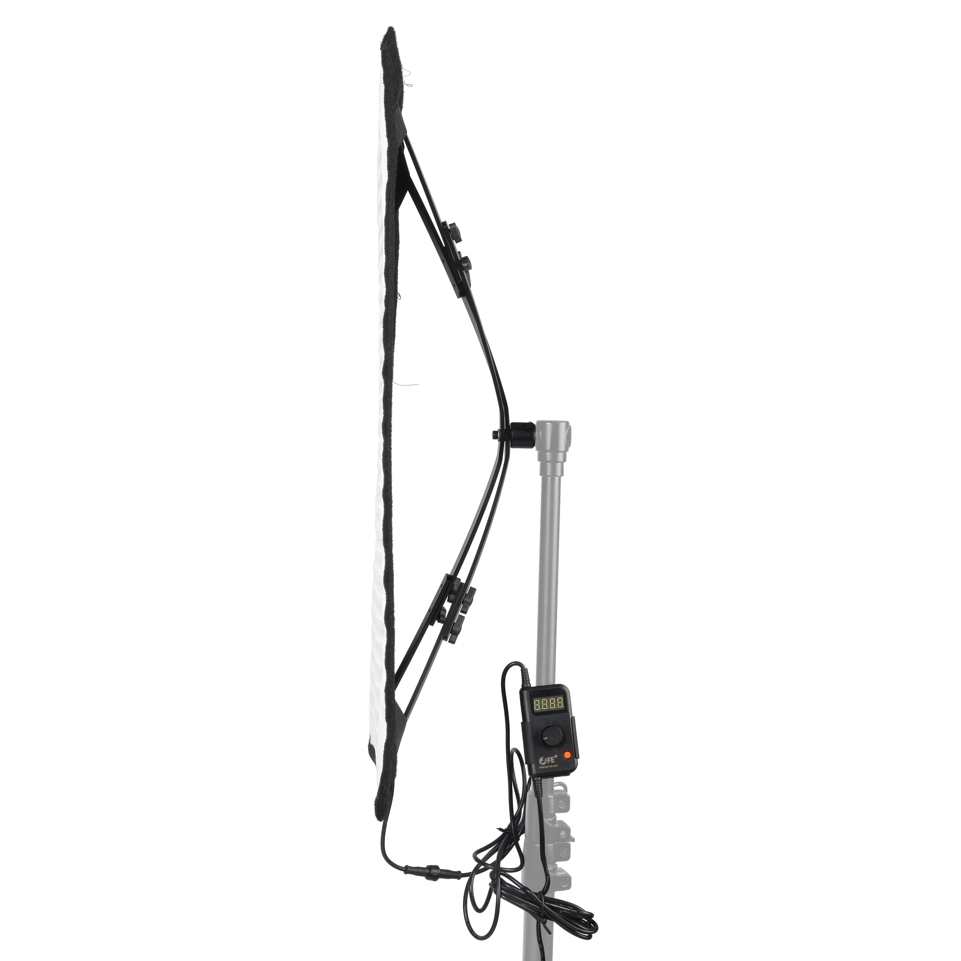 Держатель панели предусматривает установку на стойку вместо съемного шпигота 5/8” (16 мм) или, например при помощи Falcon Eyes CLD-20. Кроме того, благодаря малому весу 1.7 кг, панель можно закрепить прямо на стене при помощи двухстороннего скотча или кинотейпа.
