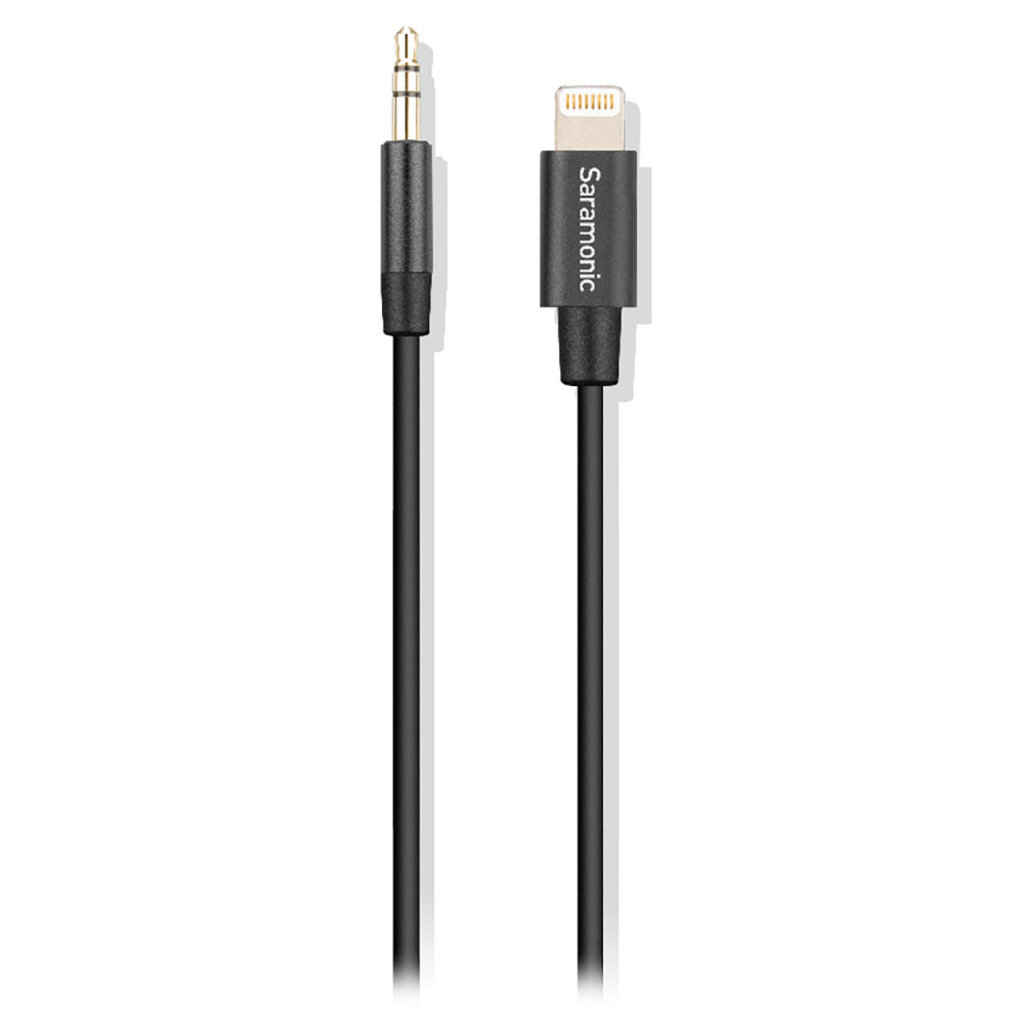 Saramonic SR-C2000 – это адаптер аудиовхода для Apple iPhone и iPad с разъемом Lightning на одном конце и штекером TRS 3,5 мм на другом. Позволяет пользователям записывать звук с микрофонов, беспроводных микрофонных приемников, аудиомикшеров и других источников звука через порт Lightning в устройства Apple iPhone или iPad.