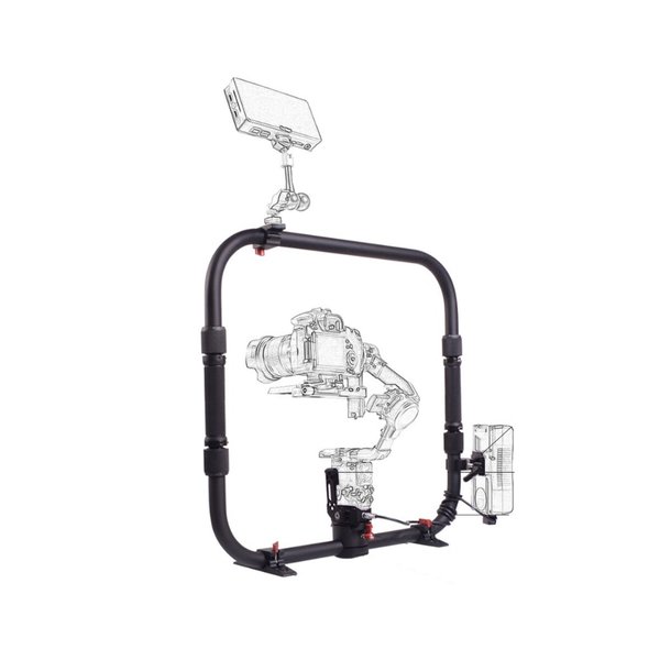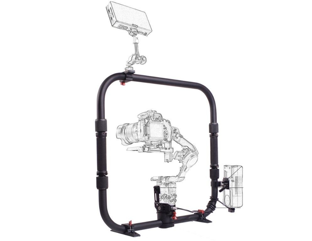 В комплект входят: быстросъёмная площадка, переходник с розеткой в стандарте ARRI, зажим для аккумулятора V-mount, две съёмные опорные ножки и мягкий переносной чехол.