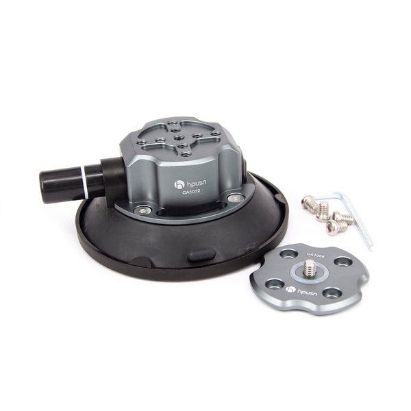 Присоска для автогрипа 4,5″ имеет 9 резьбовых отверстий диаметром 1/4″ и дополнительную площадку с внешней резьбой 1,/4, что дает возможность крепления разных аксессуаров. Присоска используется для фиксации видео и осветительного оборудование на корпусе автомобиля.