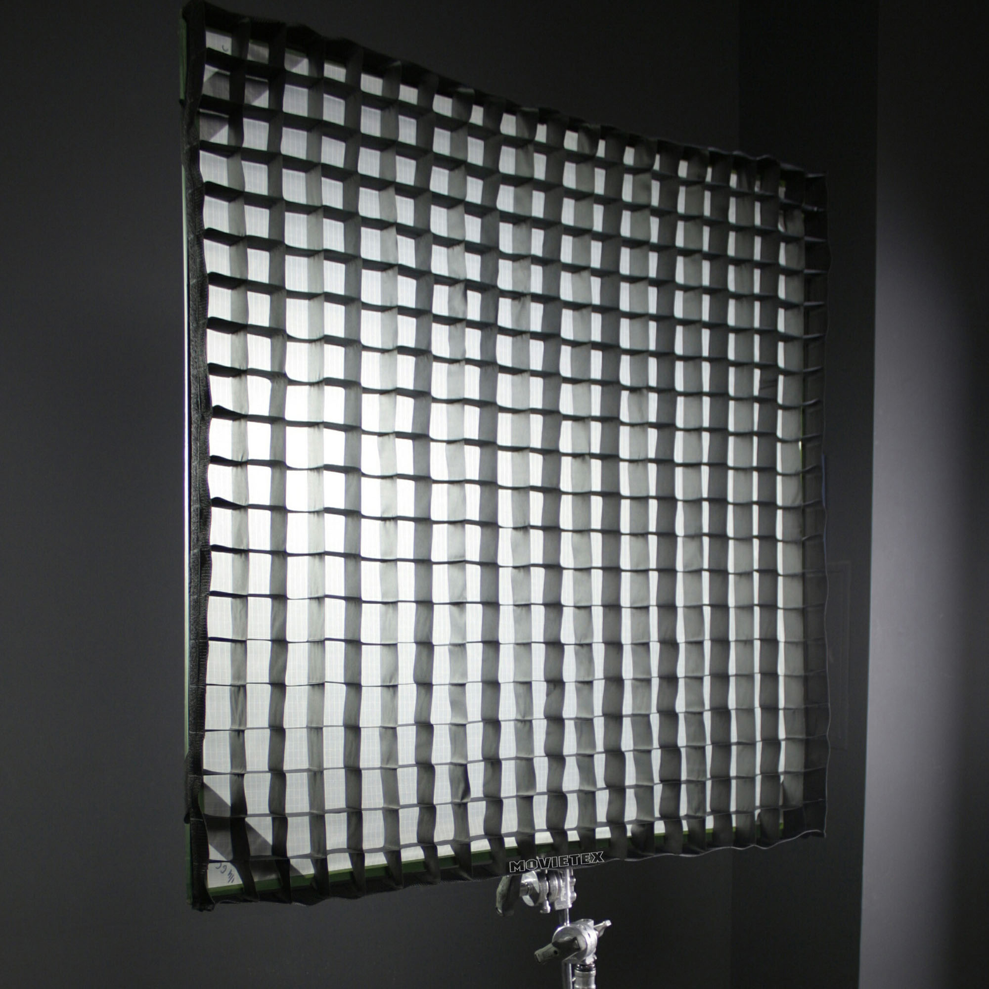Растр разворачивается и крепится на раму в два движения. Удобство и простота в эксплуатации позволяет создать градиент и мягкий свет без использования десятка флажков и штативов.