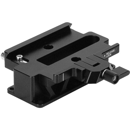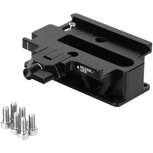 The plate features a quick release design and includes six captive screws to mount it onto the separately available baseplate. It also has an integrated safety lock to prevent plate movement or disconnection.