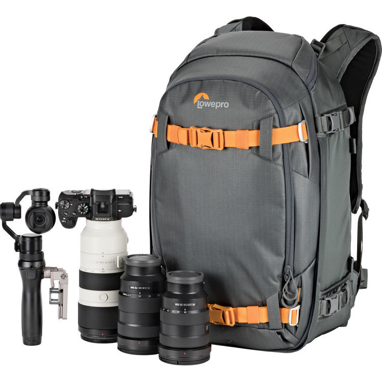 Рюкзак имеет доступ к технике со стороны спины, надежно защищает оборудование в процессе переноски и предусматривает возможность полного и частичного открытия крышки, предотвращающую вероятность падения техники и защищающую содержимое в ненастную погоду. Фоотоотделение съемное, с возможностью его извлечь из рюкзака в перерыве между экспедициями. Благодаря технологии MaxFit™ и наличию компактных перегородок внутреннее пространство фототделения вмещает больший объем техники. Прочный внутренний каркас позволяет переносить вес дополнительного снаряжения. На внешней стороне рюкзака имеются специальные ремни для крепления лыж, штатива, ледоруба, легкостопов, треккинговых палок и прочего оборудования. Ремни с системой вентиляции ActvZone System™ предназначены для комфорта в движении, дополнительно равномерно распределяют нагрузку и обеспечивают поддержку. Прочные водоотталкивающие внешние материалы надежно защищают содержимое, наличие всепогодного чехла обеспечит дополнительную защиту от влаги, пыли и песка.
