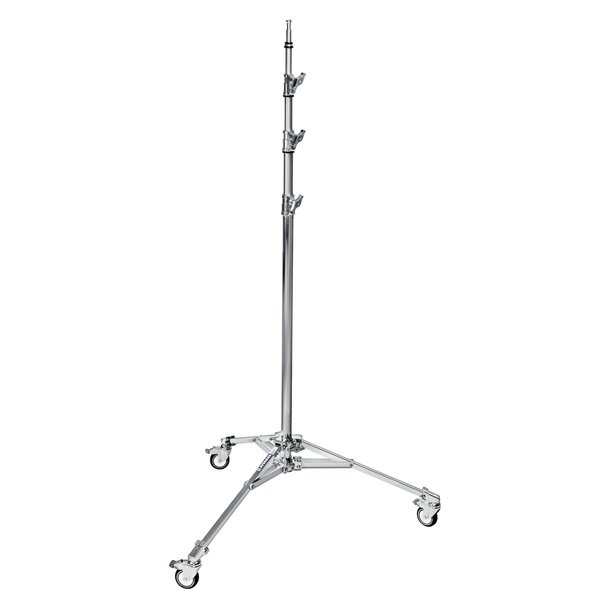 Стойка 4-х секционная 146-430см, стальная. Используется в фото-, теле- и кинопроизводстве для установки осветительного оборудования, держателей (GripHead), отражателей, гобо, флагов и прочих аксессуаров. Узел крепления 28мм DIA, 28мм PIN. В комплекте колеса с тормозным механизмом.