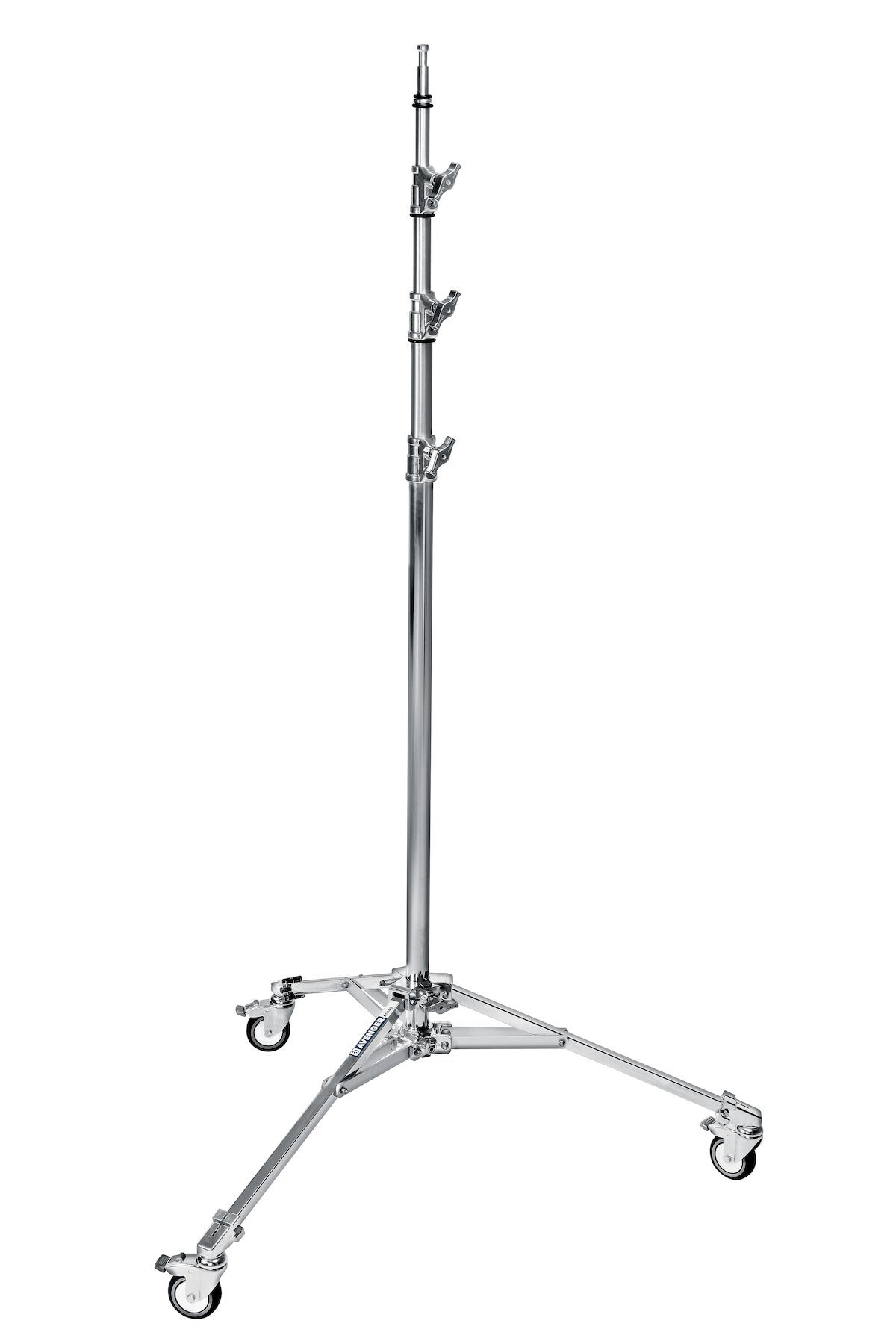 Стойка 4-х секционная 146-430см, стальная. Используется в фото-, теле- и кинопроизводстве для установки осветительного оборудования, держателей (GripHead), отражателей, гобо, флагов и прочих аксессуаров. Узел крепления 28мм DIA, 28мм PIN. В комплекте колеса с тормозным механизмом.