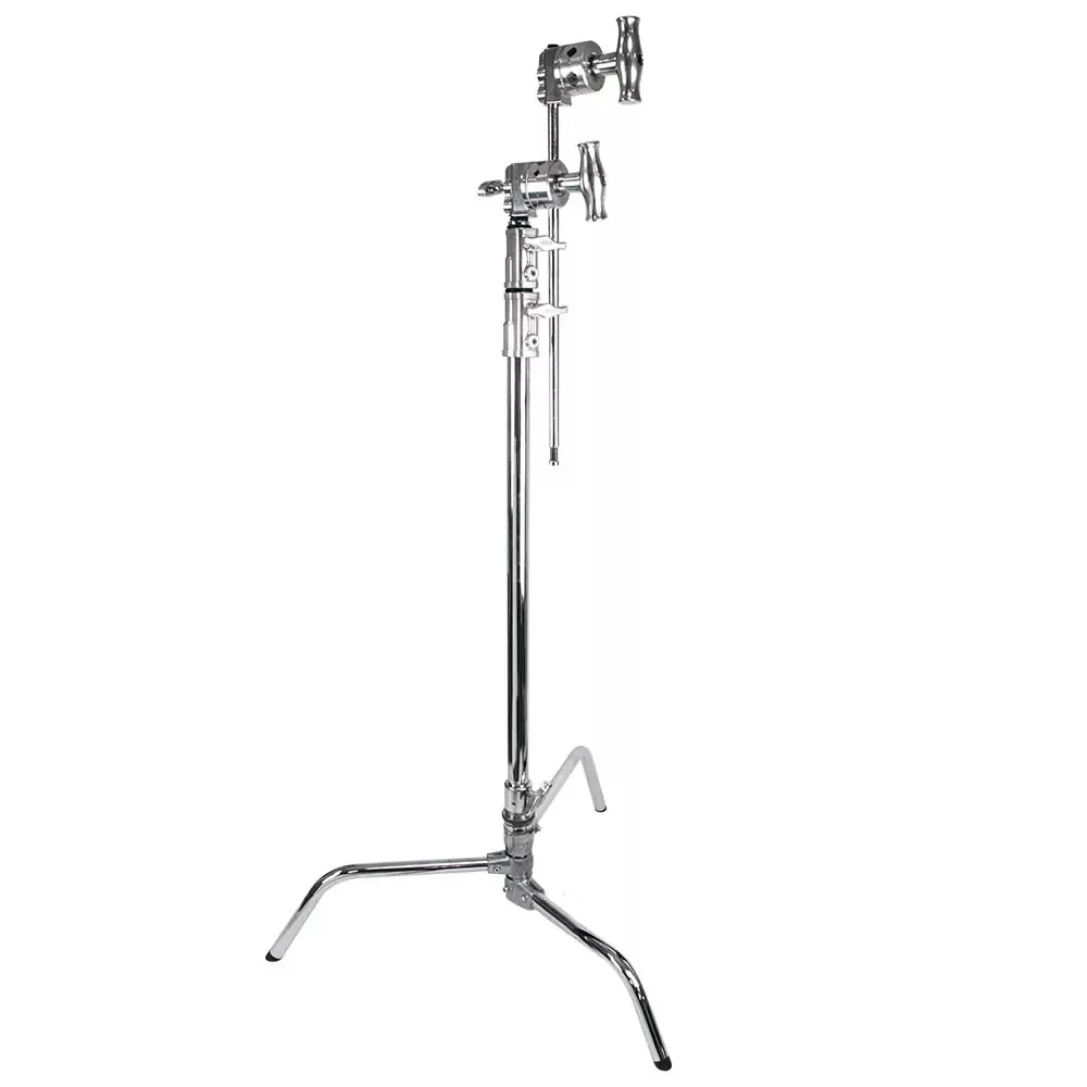 Стойка со штангой KUPO CT-20MK MASTER C-STAND TURTLE BASE GRIP ARM с основанием “черепаха” оснащена уникальной инновационной подпружиненной системой фиксации, которая позволяет раскладывать и складывать ножки стойки менее чем за две секунды. Основание “черепаха” означает специальный тип конструкции стойки, в которой центральную колонну можно отсоединить для удобства транспортировки, а основание может быть использовано с переходником для низкого расположения оборудования. Телескопическая центральная колонна имеет три секции и общую высоту 172 см. Основание стойки имеет уникальную специально разработанную конструкцию с тремя ножками различной высоты. Это позволяет размещать или вкладывать основания стоек так, чтобы ноги находились всего в нескольких дюймах друг от друга для использования стойки в непосредственной близости от другого оборудования, а также для удобства транспортировки или хранения. Стойка имеет хромированное покрытие, а ее основание выполнено из цинкового сплава, который в пять раз прочнее алюминия и выдерживает вес тяжелого оборудования и сумок-противовесов. Алюминиевые литые стопорные хомуты оснащены Heli-coil вставкой из нержавеющей стали, которая защищает зажимы секций от повреждений. Стальная шпилька Baby 5/8″ приварена непосредственно к верхней секции. Ноги стойки оснащены накладками для защиты стойки и пола.