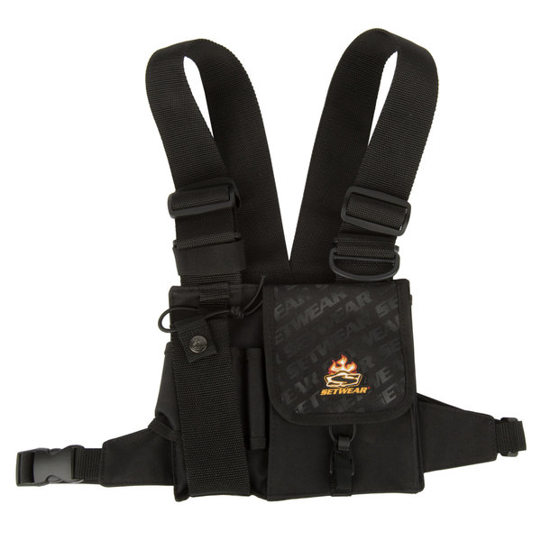 Карман слева предназначен для рации, крепление которой обеспечивается эластичной застежкой на кнопке. Помимо этого благодаря конструкции на «липучке» данный карман можно превратить в петлю-подвес, способный нести предмет диаметром до 7 сантиметров. Дополнительно имеется удобный слот для карандаша или ручки. Размер жилета регулируется благодаря системе Tri-Ring.