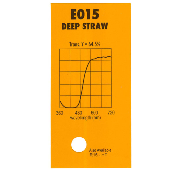 Гелевый (фолиевый) светофильтр Chris James № 015 Deep Straw относится к эффетным фильтрам. Используется со световыми источниками. Данный фильтр представляет собой теплый янтарный свет. Применяется для создания эффекта огонь свечи.