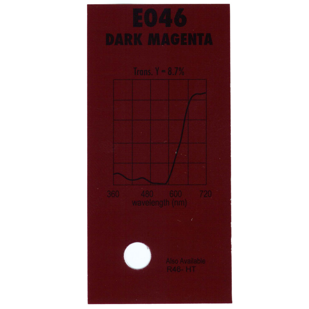 Гелевый (фолиевый) светофильтр Chris James № 046 Dark Magenta относится к эффетным фильтрам. Используется со световыми источниками. Данный фильтр применяется для подсветки насыщенным розовым цветом.