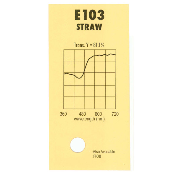 Гелевый (фолиевый) светофильтр Chris James № 103 Straw относится к эффетным фильтрам. Используется со световыми источниками. Данный фильтр применяется для имитации бледных солнечных лучей через окно. Прекрасно подходит для зимних сцен.