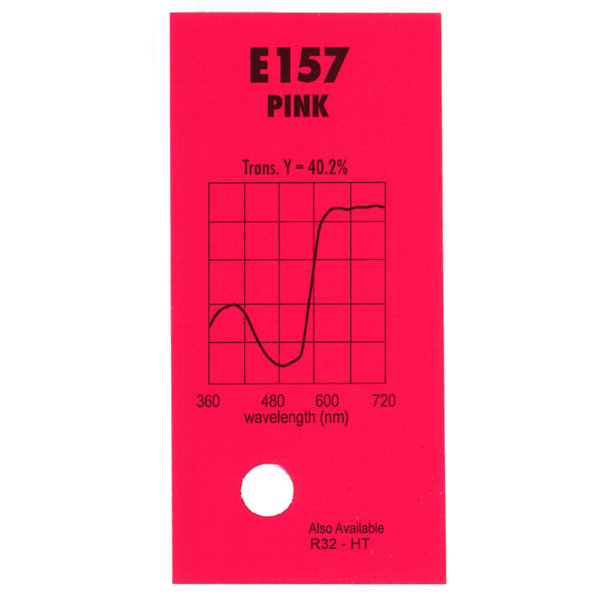 Гелевый (фолиевый) светофильтр Chris James № 157 Pink относится к эффетным фильтрам. Используется со световыми источниками. Отлично подходит для танцевальных эпизодов (используется для смягчения белых костюмов без влияния на тона кожи).