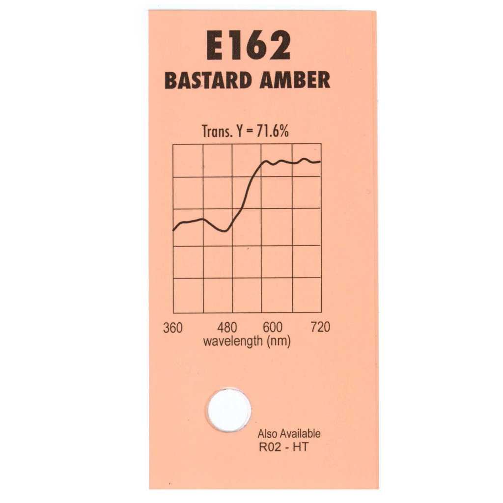 Гелевый (фолиевый) светофильтр Chris James № 162 Bastard Amber относится к эффетным фильтрам. Используется со световыми источниками. Данный фильтр придает белому свету теплый оттенок. Хорошо использовать для заливки.