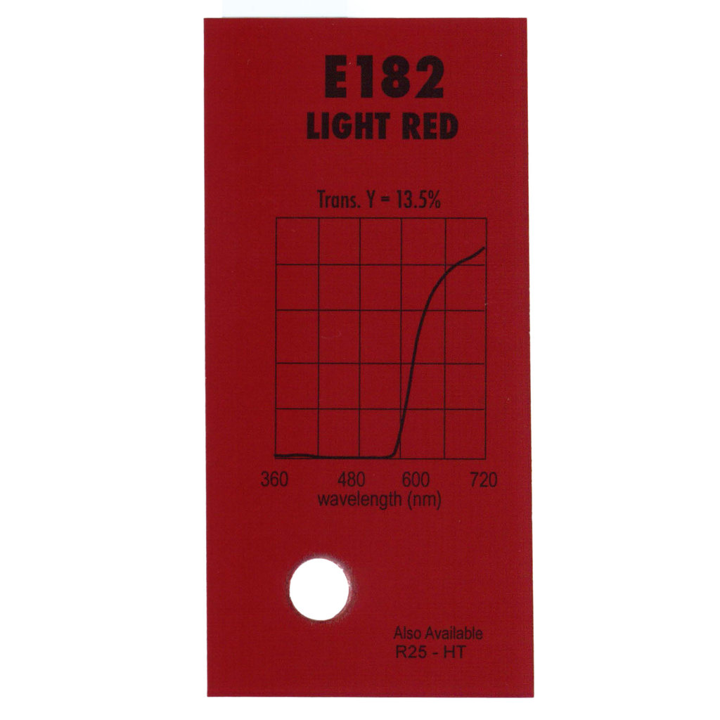 Гелевый (фолиевый) светофильтр Chris James № 182 Light Red относится к эффетным фильтрам. Используется со световыми источниками. Данный фильтр используется в театральной и телевизионной сферах и для заливки циклорам.