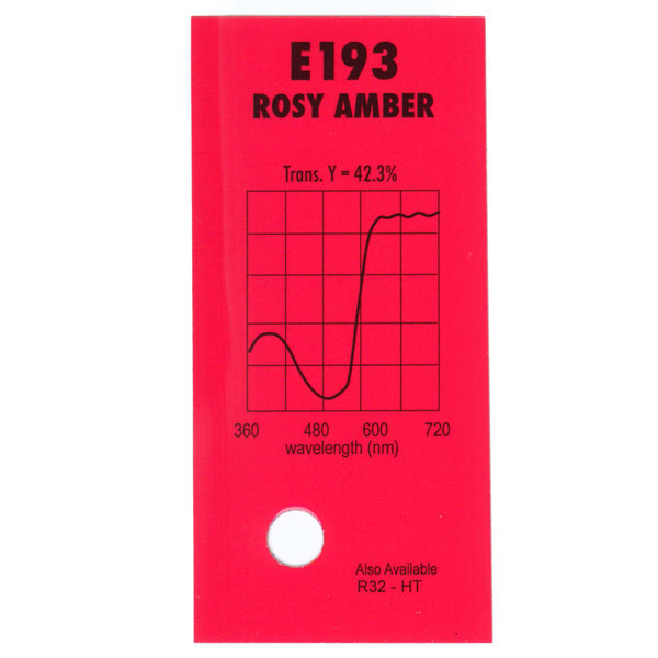 Гелевый (фолиевый) светофильтр Chris James № 193 Rosy Amber относится к эффетным фильтрам. Используется со световыми источниками. Данный фильтр подходит для создания романтического настроения.