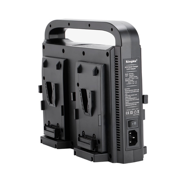 Зарядное устройство для сразу четырёх аккумуляторов с креплением V-Mount. Особая интеллектуальная система правильно распределит нагрузку, что обеспечивает наибольшую эффективность процесса. Возможность питать любое другое оборудование, подключив его к 4х контактному XLR разьему. Светодиодные индикаторы отображают состояние каждого подключения, благодаря чему возможно отследить заряд устройства на каждом этапе. Нижняя часть имеет противоскользящее покрытие и отлично балансирует, даже если установлен только один аккумулятор