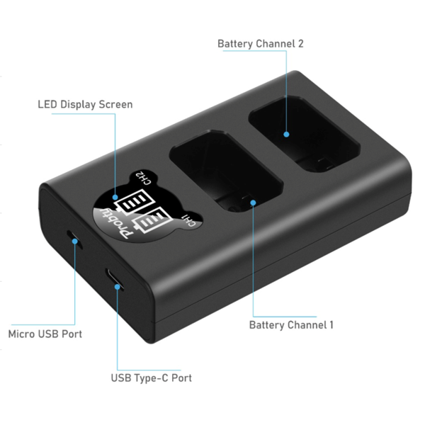 Двойное зарядное устройство для подзарядки 2-х аккумуляторов Sony NP-FZ100 , работающих с камерами Sony a9, a7R III, a7 III.