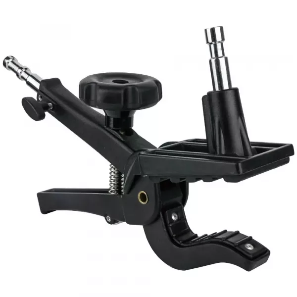 Зажим KUPO KCP-500 LARGE GAFFER GRIP, изготовленный из прочного, но легкого алюминиевого сплава, представляет собой многоцелевой зажим для быстрого монтажа на различные плоские и круглые предметы. Этот зажим является усовершенствованной версией стандартного пружинного зажима, он отличается повышенной прочностью и универсальностью. Зажим оснащен ручкой-барашком для регулировки натяжения, несъемным штифтом 5/8″, приемным отверстием 5/8″ (16 мм) и комплектуется длинным съемным штифтом 5/8″ (16 мм). Губки оборудованы антискользящими вставками и имеют рабочий ход в диапазоне от 16 до 60 мм.