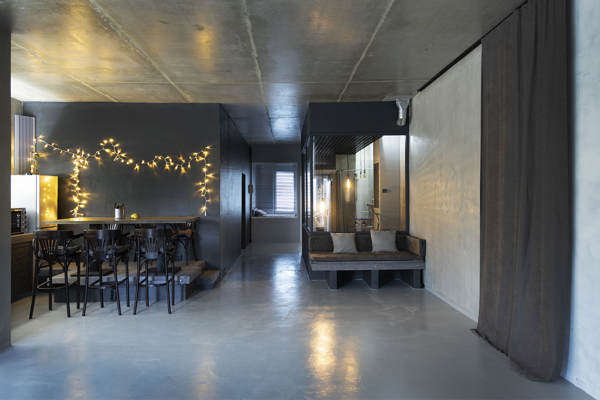 Квартира, общая площадь 85 м, студийная зона 50 м.