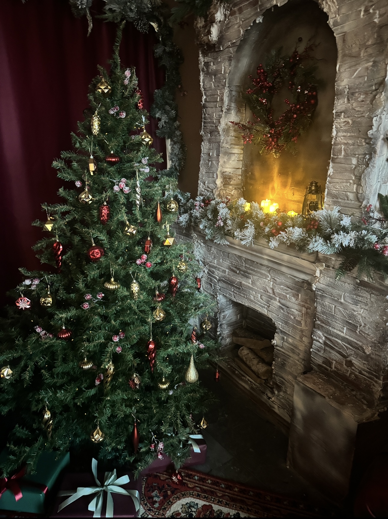 10. Комната с камином и диваном в нг елки